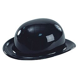 Bowler en plastique noir pour correspondre avec des déguisements différents, tels que des vêtements élégants ou le célèbre personnage de Charlie Chaplin. Dimensions: circonférence cm. 58 x 10 cm de hauteur.